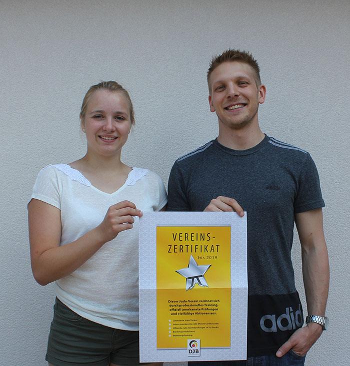 Von links: Lisa Kretschmer und Michael Fluhrer mit dem Vereinszertifikat